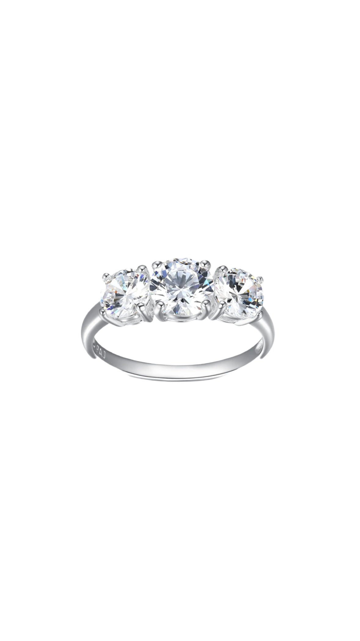 Timeless and elegant, the Mery Trilogy Ring is crafted from genuine 925 sterling silver and designed to symbolize the past, present, and future of your love. Featuring three round-cut cubic zirconia stones in a secure prong setting, it radiates brilliance that rivals real diamonds—making it a stunning yet affordable choice for an engagement or promise ring.