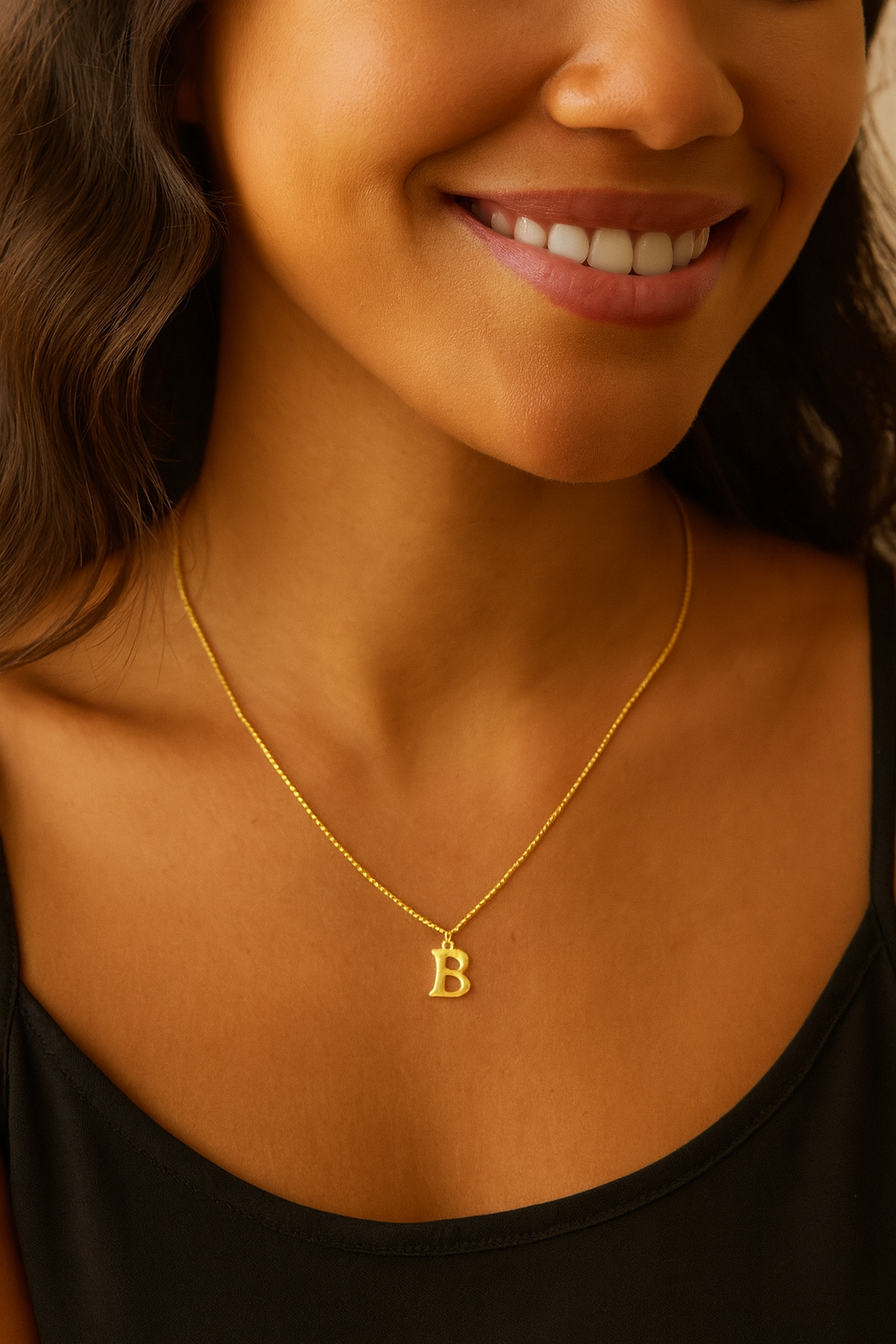 The Selena Necklace is a refined essential that blends timeless simplicity with modern charm. Crafted in 14K gold plating, it features a delicate chain adorned with a bold initial pendant, making it the perfect personalized touch for any style.